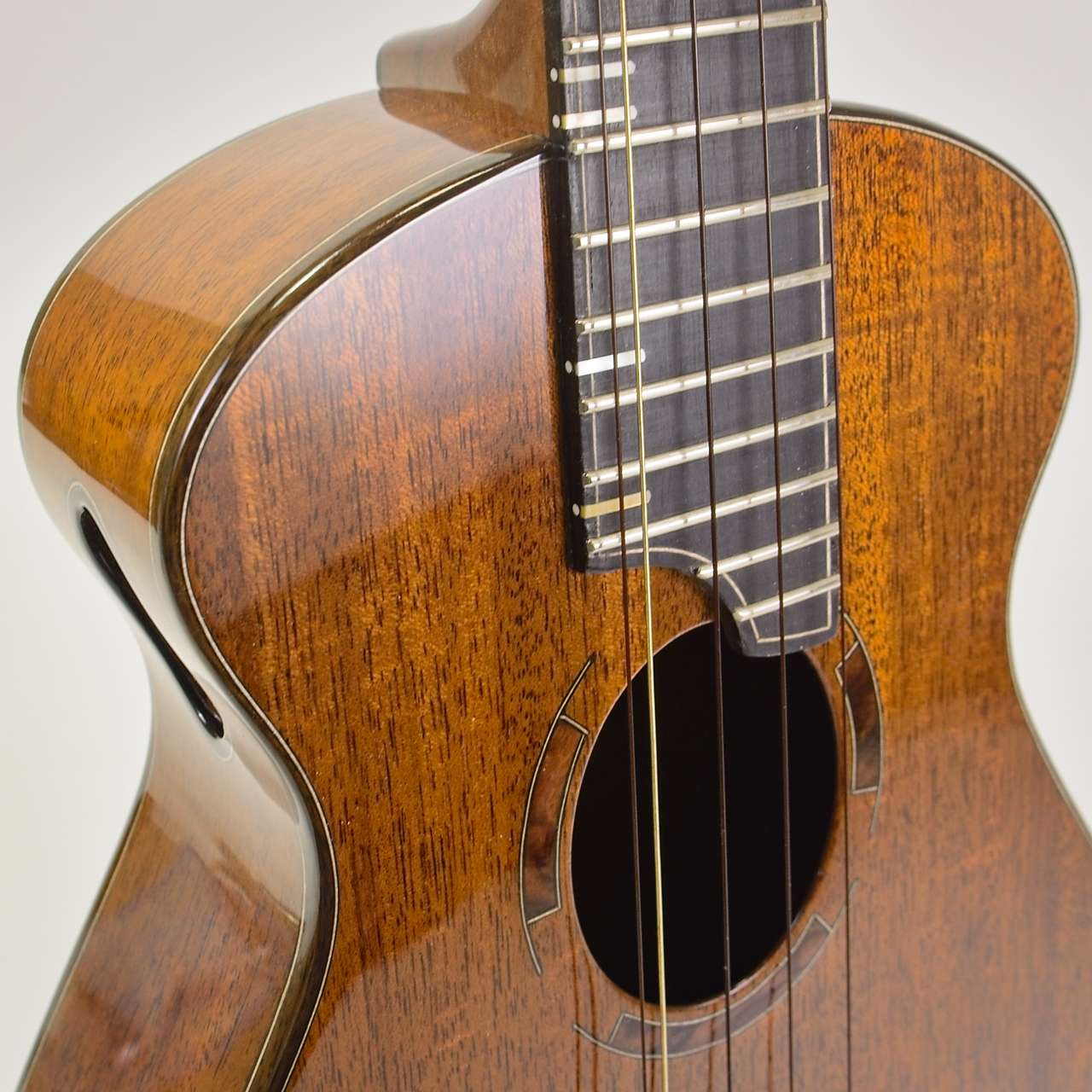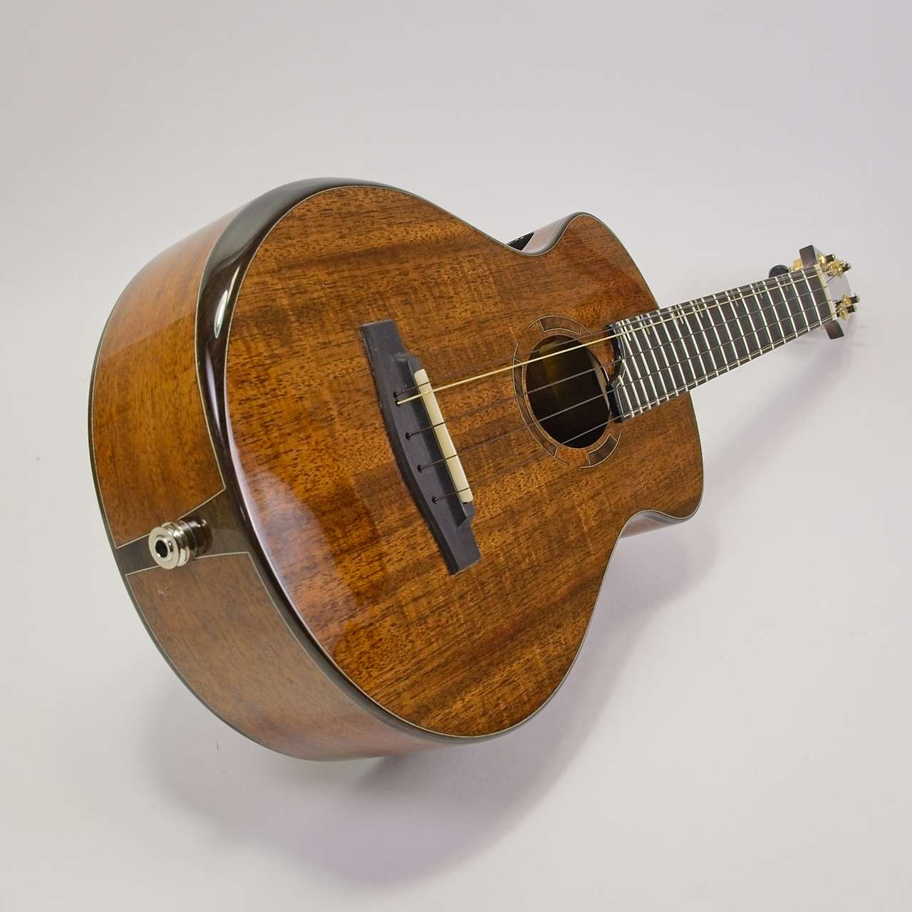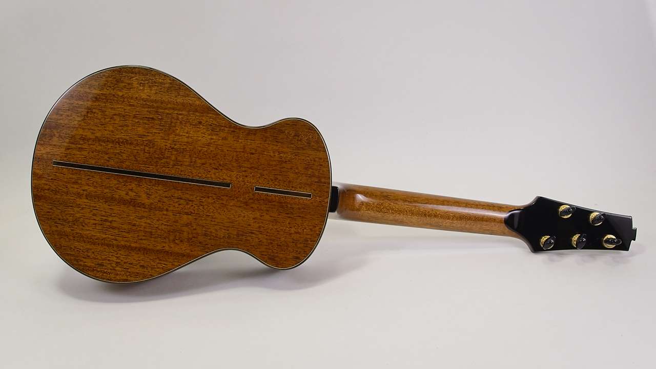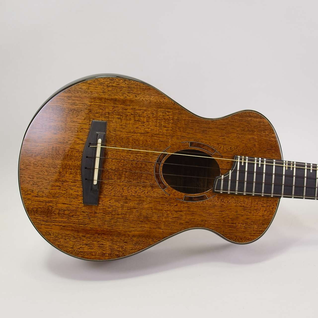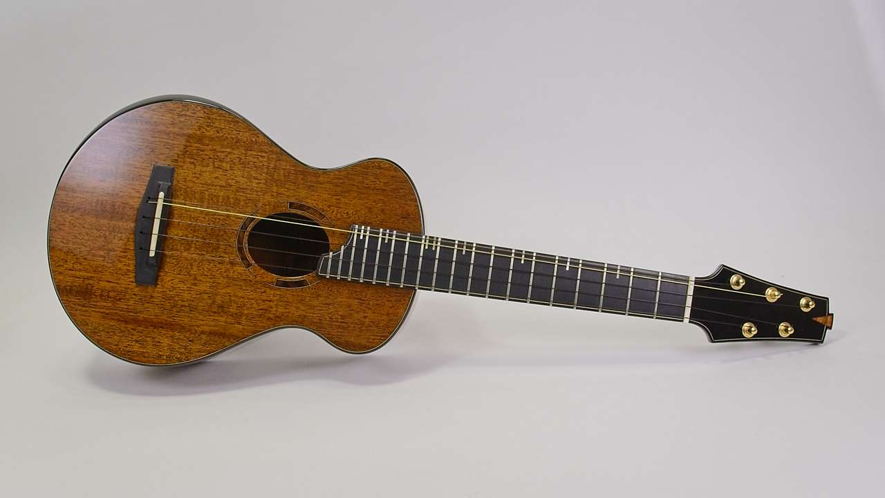 This custom 5-string mahogany tenor ukulele blends classic warmth with expanded range. The mahogany body produces a rich, balanced tone, while the added fifth string brings extra depth and versatility to your playing. Handcrafted with care, it’s designed to inspire both performance and creativity.